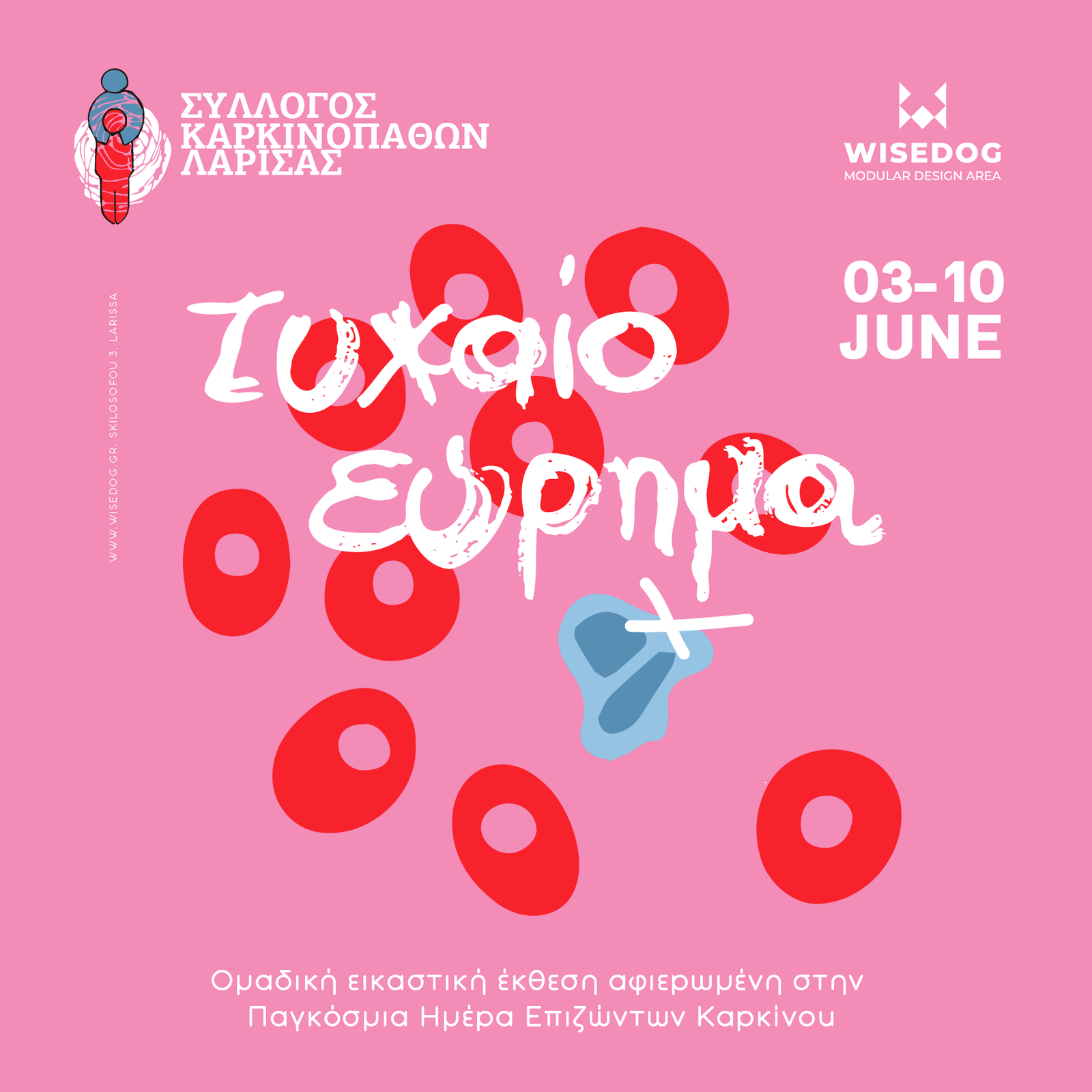 Ο Σύλλογος Καρκινοπαθών Λάρισας γιορτάζει την Παγκόσμια Ημέρα Επιζώντων Καρκίνου με την παρουσίαση της εικαστικής πολυμεσικής έκθεσης, με τίτλο Τυχαίο Εύρημα, που θα εγκαινιαστεί στον εκθεσιακό χώρο του Wisedog, την Παρασκευή 3 Ιουνίου στις 20:30.
