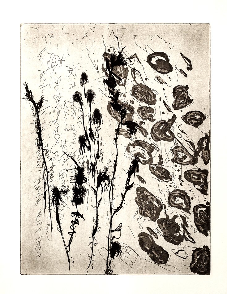 Συχνά τα φυτά των χαρακτικών έργων της έκθεσης «σχολιάζουν» συνθήκες ή περιγράφουν καταστάσεις.