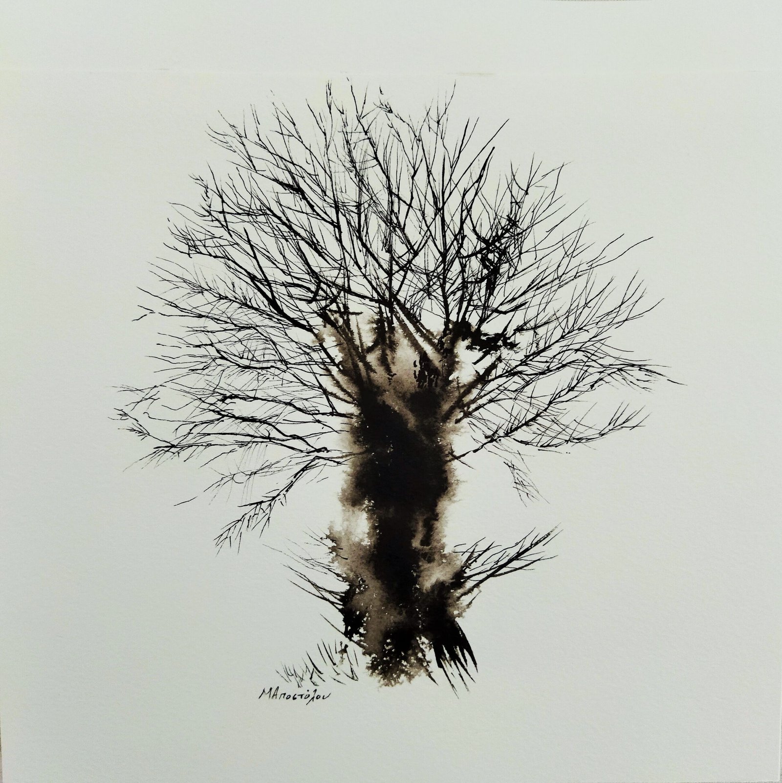 «Ανοίκειες αλλά και οικείες είναι οι εικόνες με τις τοπιογραφίες της Μάγδας Αποστόλου. Αυθύπαρκτα, επιβλητικά, σιωπηλά, αν και θεαματικά λαλίστατα τα τοπία της είναι φιλοτεχνημένα με μελάνι πάνω σε χαρτί ή σε καμβά.