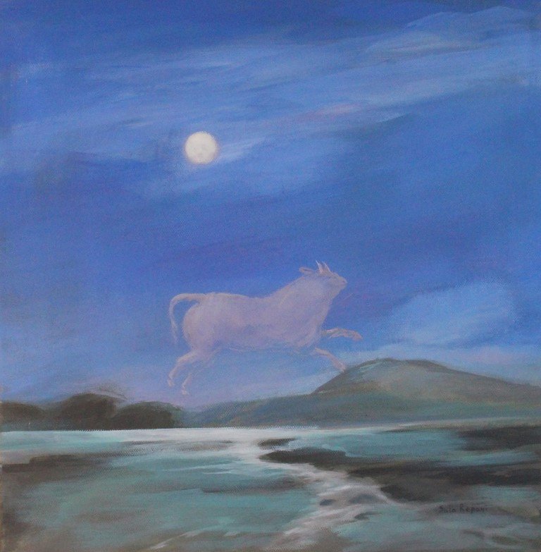…Η Σούλα Ρεπάνη ζωγραφίζει από τα σωθικά της, από το μυστήριο της ύπαρξης, της ζωής και του υλικού που ανέκαθεν κινούσε την σκέψη των πρώτων φιλοσόφων. Η ζωγραφική της αναδύεται από την στενή σχέση της με την πραγματικότητα, από το μείγμα δηλαδή ζωής, τύχης και χρόνου.