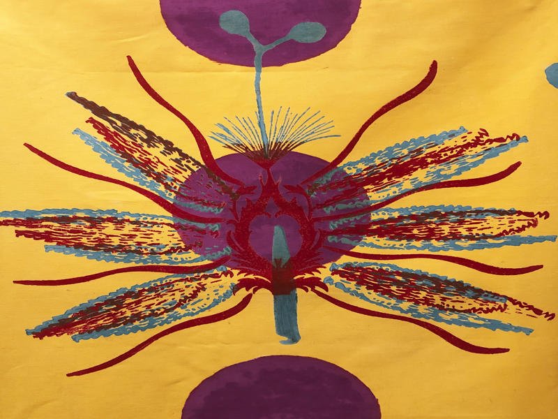 In her first solo exhibition in Athens, Allegra Corbo presents a series of fabric banners printed by hand, in dialogue with woodcut techniques and traditional block printing, creating a contemporary visual ritual.