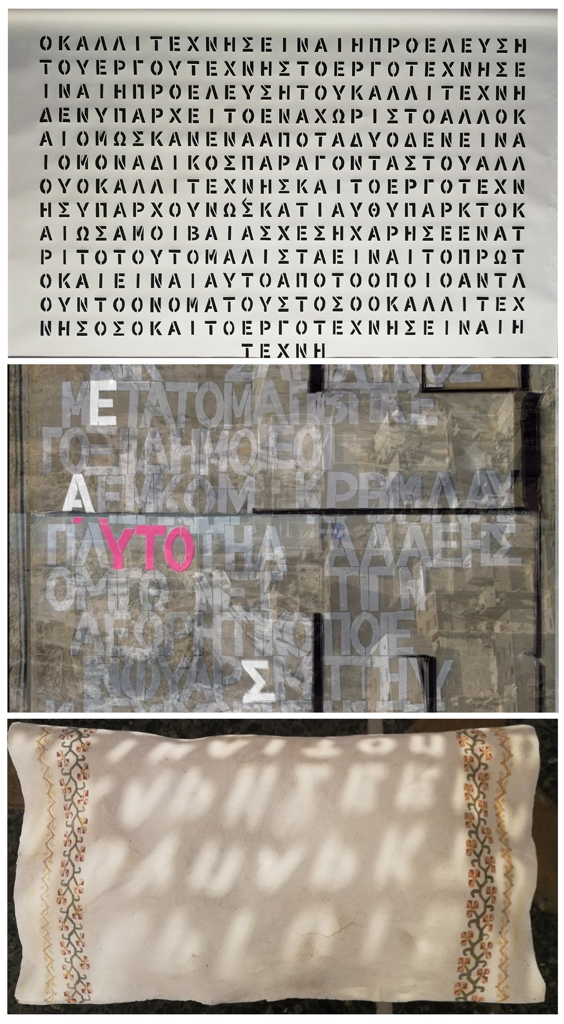 Participating artists: Rena Avagianou, Katerina Aslanidou, Iakovos Vais, Chrιsa Valsamaki, Giannis Galaios, Leonidas Giannakopoulos, Elli Griva, Thalassini Douma, Markos Evlogimenos, Katerina Kalantzidou, Georgia Kalogeropoulou, Vasiliki Koskiniotou, Afroditi Krontiri, Matina Mavronikola, Dimitris Miliotis, Lamprini Boviatsou, Ismini Bonatsou, Kostas Daflos, Calli Doltcetti, Afroditi Papadouli, Marios Pelonis, Eleni Pechlivani, Angeliki Svoronou, Foivos Sofikitis, Photini Stephanidi, Martha Tsiara, Voula Ferentinou, Sofia Houliara.
