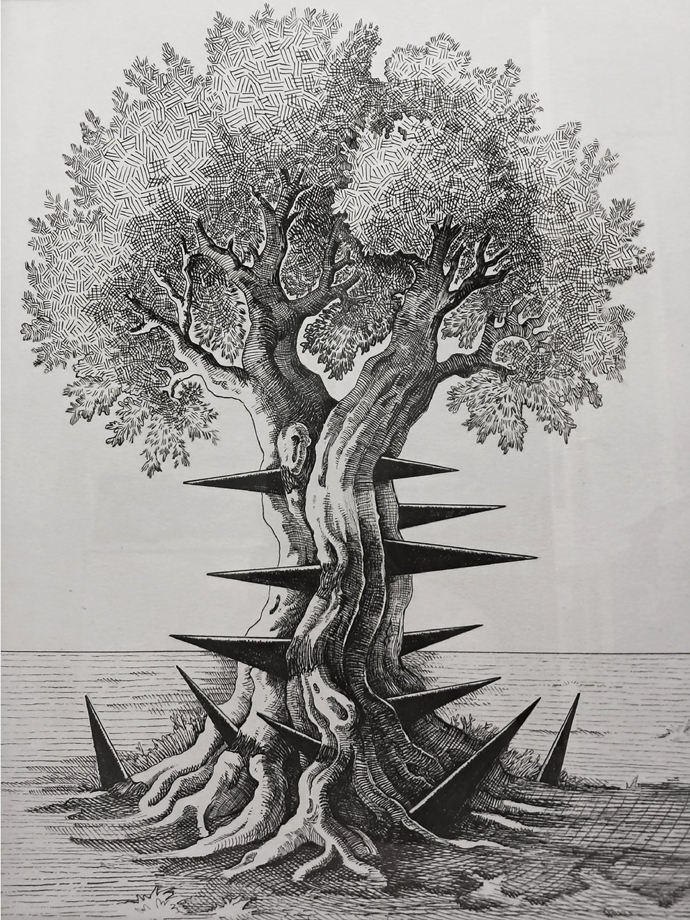 This exhibition presents a range of visual works that critically engage with the questions raised by The Persians. Using diverse aesthetic media—painting, drawing, printmaking, sculpture, installations, photography, and video—the artists explore both the drama of Atossa as a central figure striving to interpret her visions and their fulfillment, and Xerxes’ hubris with the suffering it engenders. They bring these themes into the present, questioning: How does the average Western individual experience the struggle for survival amid wars of interest and under a voracious leadership? Are the ‘gods’ still the ones shaping our fate, or are there alternative routes to navigate beyond the traps of Western civilization?”