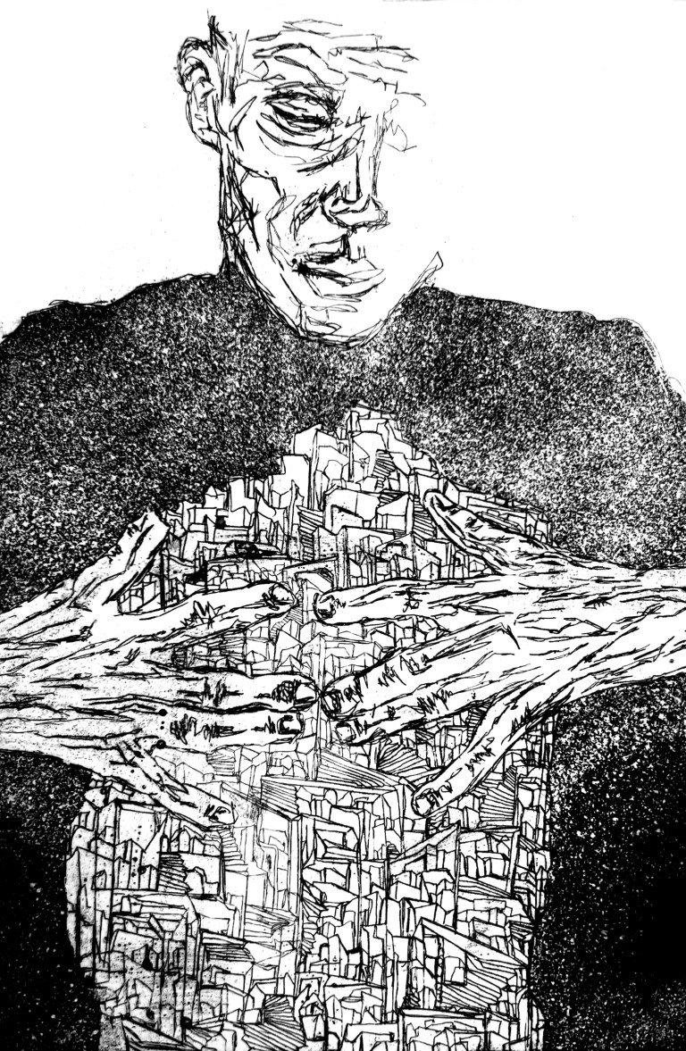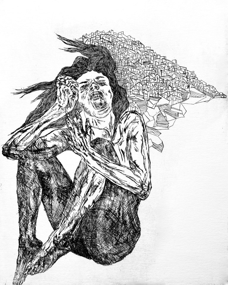 Από τα διερευνητικά βλέμματα, το ερωτικό χάδι και το τρυφερό συναπάντημα παλαιότερων έργων, η καλλιτέχνις περνά σε σώματα αγωνιούντα και χώρους που κραυγάζουν. Μέσα από ένα πολυσυλλεκτικό βλέμμα και μια λεπτομερειακή χαρακτική γραφή, ο άνθρωπος αποτυπώνεται ως κάποιος που απελπίζεται, φοβάται και βασανίζεται, αλλά ταυτόχρονα αγωνίζεται και ελπίζει. Παράλληλα, εμφανίζεται ως οικολογικός καταστροφέας μέσα από το θλιμμένο βλέμμα των ζώων, ενδεής και αποξενωμένος.