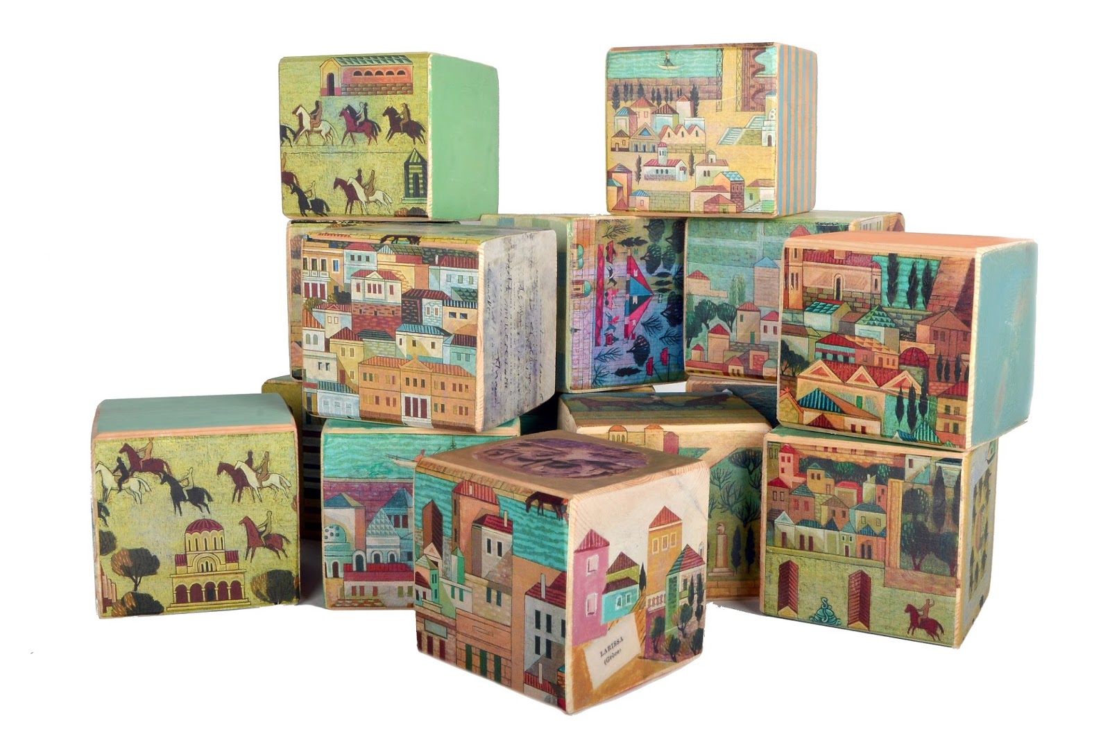 Σδούκου Iφιγένεια,“Join my cubes”,15 ξύλινοι κύβοι διαστάσεων 12εκ. ο καθένας ( ζωγραφική , κολλάζ ) |