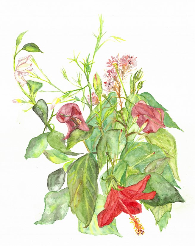 Το ζωγραφικό σκέλος της έκθεσης απαρτίζεται από υδατογραφίες, υπαγορευμένες από μια ενστικτώδη ανάγκη παρατήρησης και αφουγκρασμού του συνειδητού φυσικού κόσμου με τις πέντε αισθήσεις αλλά ταυτόχρονα και με μια διάθεση ενδοσκόπησης.