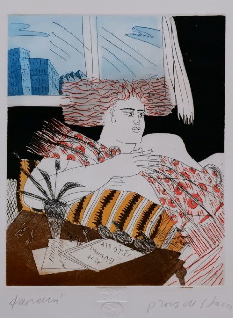 Art Historian and curator Elli Leventaki, who signs the curatorial text of the exhibition catalogue notes: “His etchings here reflect all his pursuits and aspirations that originated from painting, carrying, in addition, the qualities of the material. From his typically anthropocentric work, he has eliminated unnecessary representational elements, sticking to a simple depiction of the figure and allowing it to occupy most of the paper unhindered. Line and color create dynamic and vivid forms that float in a dream-like world, while small details here and there lend an unpretentious tenderness to the result. Through the two-part modular exhibition ‘The etchings of Alekos Fassianos: Athens Printmaking Art Centre 1979-2008’, a body of the artist’s work is presented, which emerged in collaboration with APAC’s studio over the years and is now part of its collection. It consists of around ninety etchings, many of which are being exhibited for the first time in the public sphere and constitute almost the entirety of his printmaking work with this medium. The aim is to present this aspect of Alekos Fassianos’s work as fully and extensively as possible, as a small homage to his memory.”