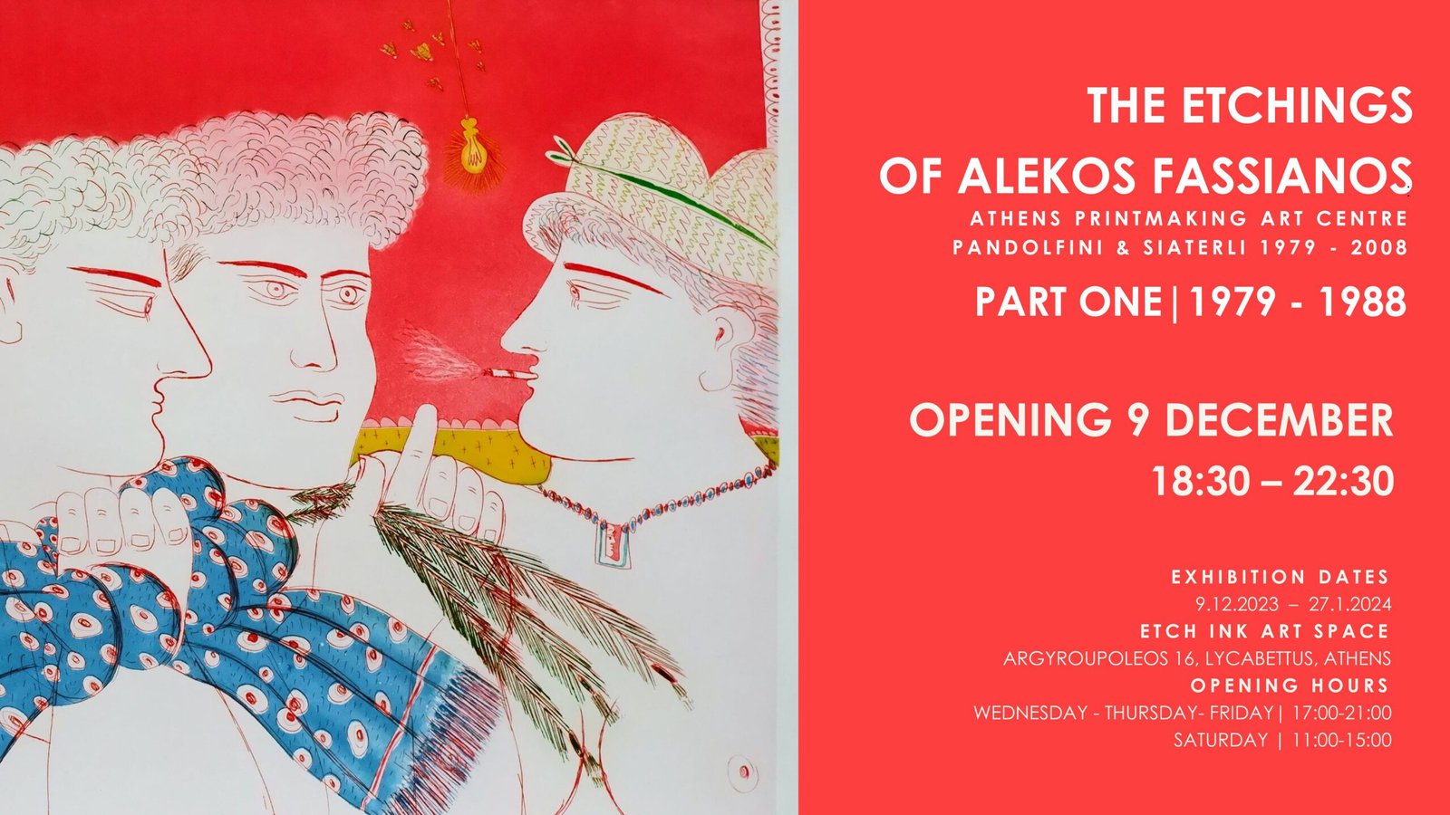 Ξεκινώντας στις αρχές Δεκεμβρίου η έκθεση χαρακτικής για το έργο του Αλέκου Φασιανού ξεδιπλώνεται μέσα από δύο διαδοχικά μέρη, αποσκοπώντας στην εκτενή παρουσίαση των χαλκογραφιών του καλλιτέχνη, που φιλοτεχνήθηκαν και τυπώθηκαν σε συνεργασία με το εργαστήριο του ΚΕΝΤΡΟΥ ΧΑΡΑΚΤΙΚΗΣ ΑΘΗΝΩΝ – PANDOLFINI & ΣΙΑΤΕΡΛΗ από το 1979 μέχρι το 2008. Η αφιερωματική αυτή έκθεση αποτελεί την πρώτη συνεπή και συστηματική προσπάθεια καταγραφής και ανάδειξης του χαρακτικού έργου του σπουδαίου δημιουργού, μετά τον θάνατο του, και υλοποιείται μέσα από μια ειδικά επιμελημένη έκθεση χαρακτικής στον χώρο τέχνης ETCH INK, έναν δίγλωσσο κατάλογο, και την παρουσίαση μιας ταινίας ντοκιμαντέρ από το αρχείο του Κέντρου Χαρακτικής Αθηνών σε σκηνοθεσία του Νίκου Αναγνωστόπουλου. Η εκτενής και εστιασμένη παρουσίαση εκτυλίσσεται σε δύο μέρη, το πρώτο εκ των οποίων εγκαινιάζεται τον Δεκέμβριο του 2023 και καλύπτει το διάστημα δημιουργίας μεταξύ 1979-1988. Το πολιτιστικό αυτό πρόγραμμα που θα διαρκέσει για τους επόμενους τρεις μήνες στο χώρο τέχνης ETCH INK αποσκοπεί στο να φωτίσει το πολύπλευρο έργο του δημιουργού αναδεικνύοντας την ικανότητά του να εκφράζεται και να δημιουργεί μέσα από τη χαρακτική με την οποία καταπιάστηκε συστηματικά καθόλη τη διάρκεια της σπουδαίας καλλιτεχνικής του διαδρομής.