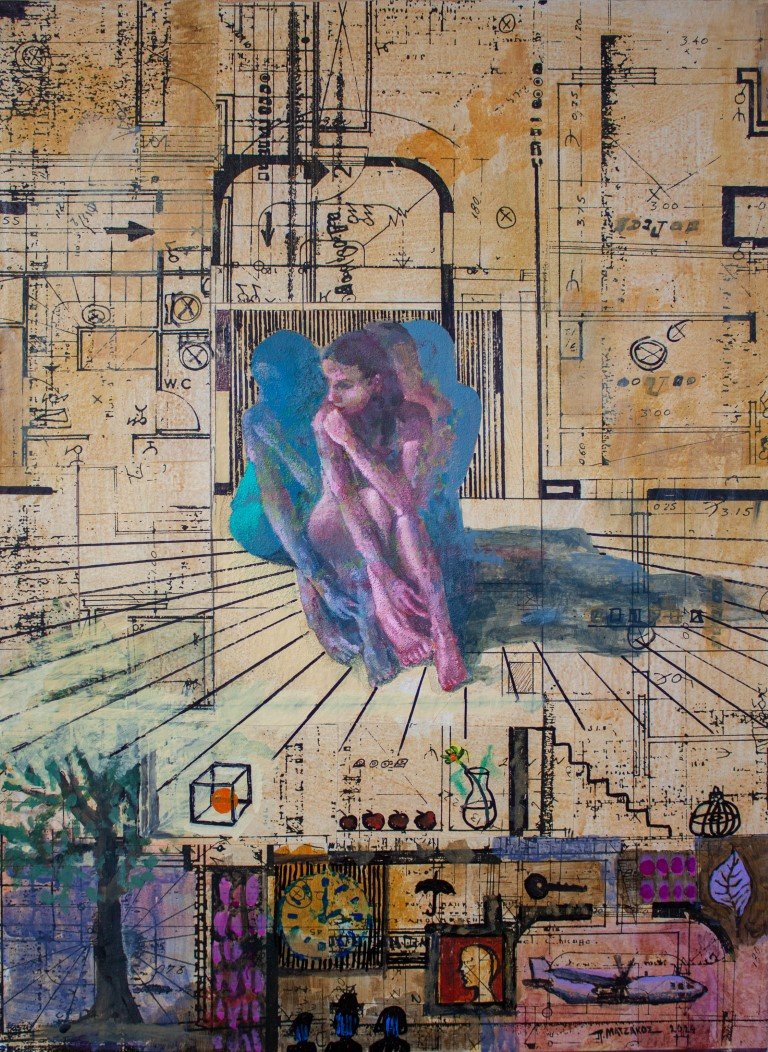 Ο τολμηρός συνδυασμός της ασύμβατης χρήσης των χρωμάτων και των τονικών αποχρώσεων με την επανάχρηση των υλικών και εν προκειμένω, των αρχιτεκτονικών σχεδίων, προάγει μια εν δυνάμει και συνάμα εναλλακτική οπτική θέασης των προσώπων και των ιστοριών τους, δημιουργώντας επιμέρους συνθέσεις. Οι συνθέσεις αυτές διαπνέονται από μια εσωτερικότητα, μια αισθαντικότητα, μια ιδιόμορφη ευαισθησία, αλλά και μια αέναη ενεργητικότητα, καθώς προβάλλουν την ανθρώπινη αλήθεια κάθε ιστορίας και ωθούν σε πολυεπίπεδες προσεγγίσεις.