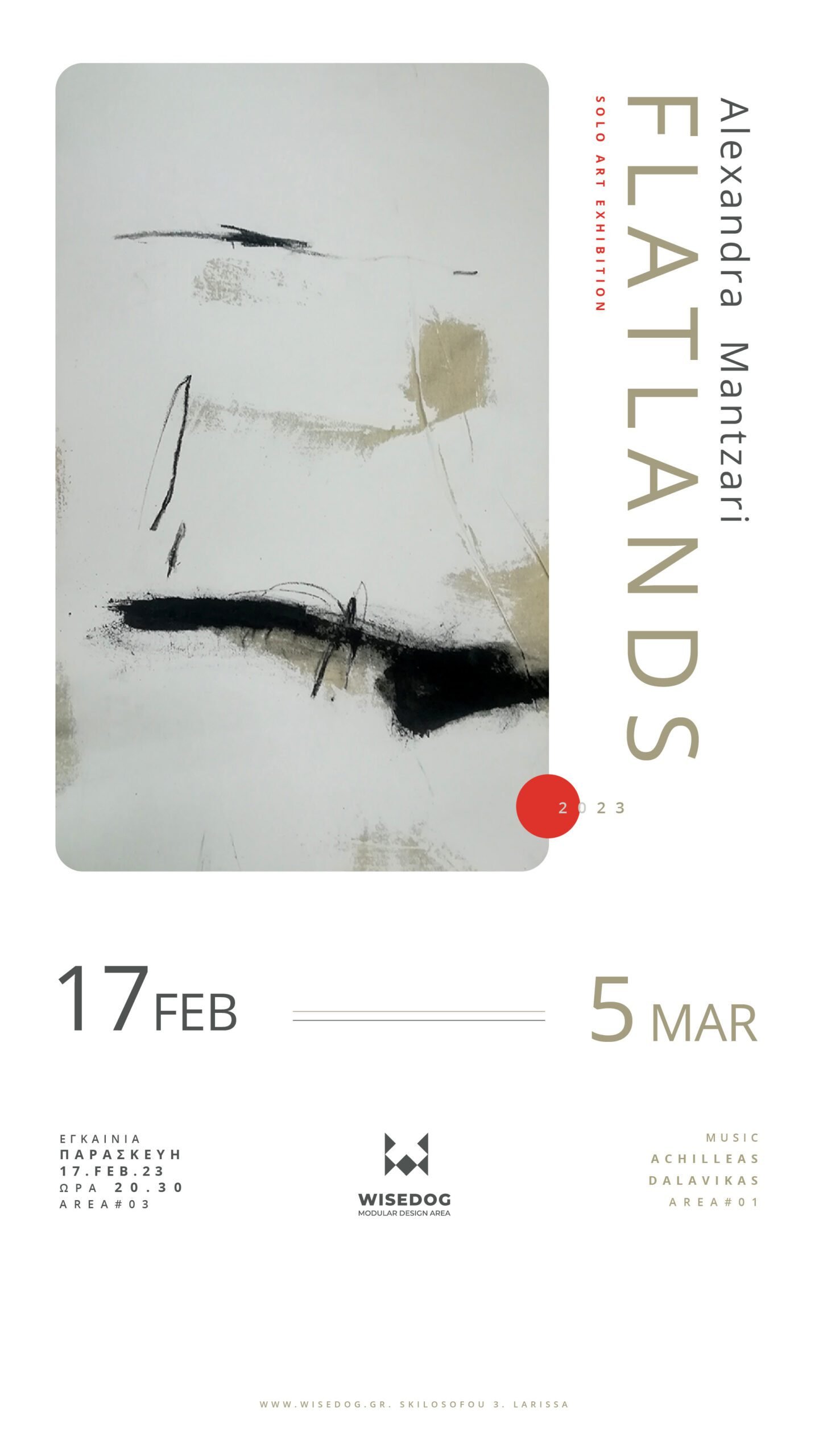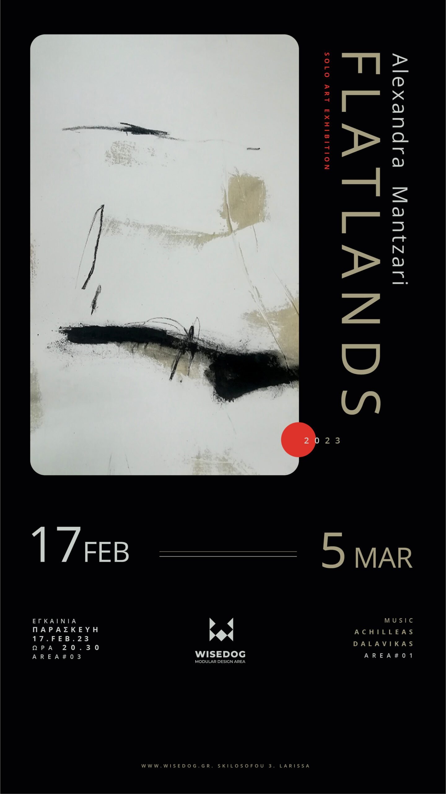 Το Wisedog εγκαινιάζει την Παρασκευή 17 Φεβρουαρίου στις 8:30 μ.μ., στον υπόγειο εκθεσιακό του χώρο την τρίτη ατομική εικαστική έκθεση της Αλεξάνδρας Μάντζαρη, με τίτλο Flatlands. Η έκθεση περιλαμβάνει την παρουσίαση ενός μέρους των έργων που απαρτίζουν τη σειρά.