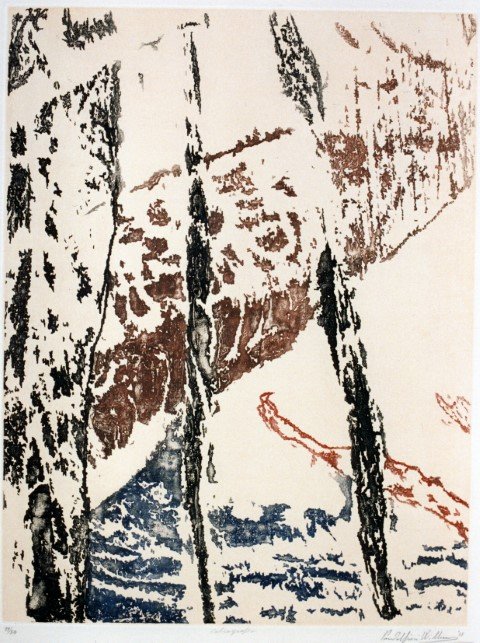 Pino Pandolfini, Ελλάδα II, 1978, χαλκογραφία, 65 x 50 εκ. © Κέντρο Χαρακτικής Αθηνών - Pandolfini & Σιατερλή Pino Pandolfini, Greece II, 1978, etching, aquatint, sugar lift, 65 x 50 cm. © Athens Printmaking Art Center - Pandolfini & Siaterli