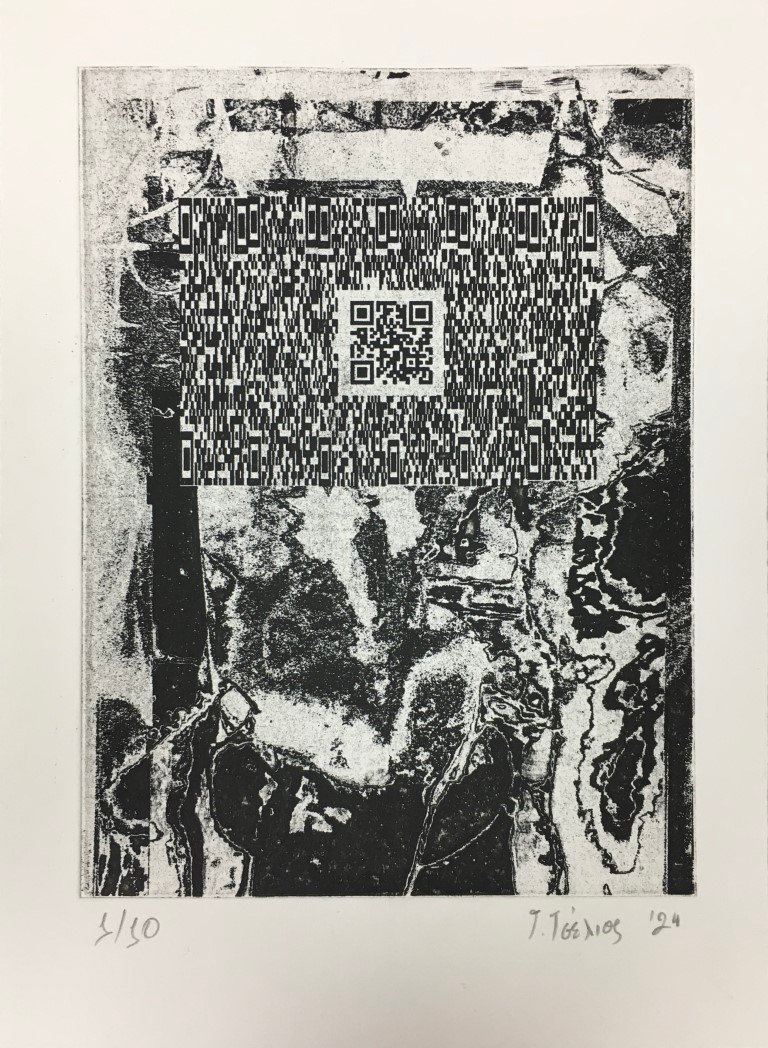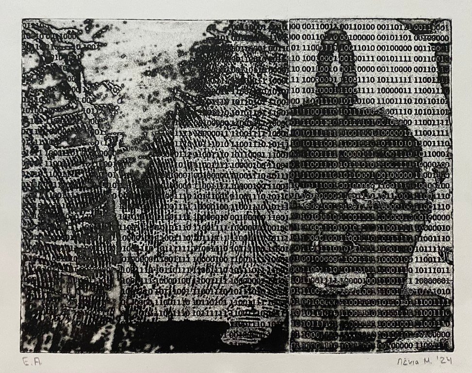 Following an open call to the artistic community, ATHENS PRINTMAKING ART CENTER invited visual artists and printmakers from all over the world to critically examine the general and widespread digitisation of human interactions and the impact of personal data processing systems in human lives, through the lens of contemporary printmaking. The exhibition brings together 49 contemporary printmakers from Greece, UK, France, Italy, Spain, Germany, Austria, the Netherlands, Romania, Ukraine, Poland, Sweden, Finland, China, Vietnam, Argentina, Canada, and the USA, featuring works created with the techniques of etching, woodcut, silkscreen, linoleum, and mixed media.