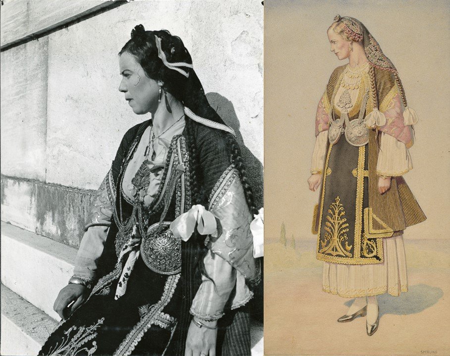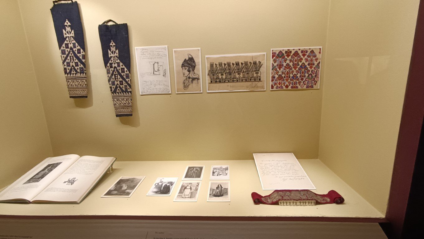 Στην έκθεση, ο επισκέπτης περιηγείται ανάμεσα σε σπάνια τεκμήρια και αυθεντικά έργα: τους δύο τόμους της συλλεκτικής έκδοσης, υδατογραφίες και σχέδια του Sperling, σημειώσεις και φωτογραφίες της Χατζημιχάλη, επιλεγμένες φορεσιές από τη συλλογή του Μουσείου, καθώς και αρχειακό υλικό από το ιστορικό τυπογραφείο της Ασπιώτη–ΕΛΚΑ. Μέσα από αυτά, ξετυλίγεται όχι μόνο η ιστορία μιας σπουδαίας έκδοσης, αλλά και το πορτρέτο μιας εποχής γεμάτης πίστη στη δύναμη της ελληνικής δημιουργίας.