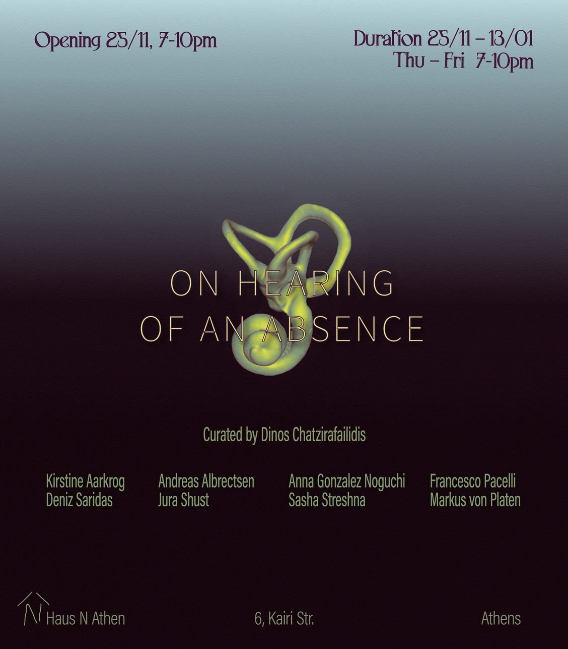 Haus N Athen is pleased to present the exhibition “On Hearing of an Absence”