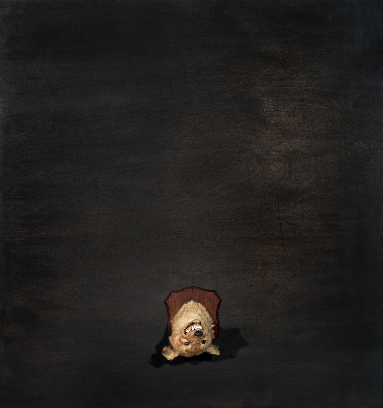 Λυδία Δαμπασίνα, Untitled, 2018, plywood, acrylic, wood, stuffed wolf. |