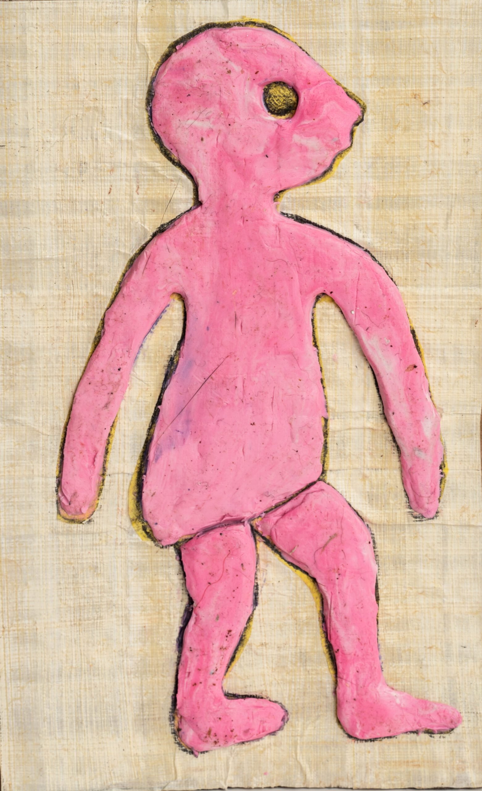 Η εργασία της Χατζηγιώση συνίσταται στη δραματοποίηση των 45 εικονογραμμάτων του Δίσκου, μετατρέποντας το αρχαιότερο τυπογραφικό μνημείο σε μια πρωτότυπη γλυπτική εγκατάσταση. Φτιαγμένα από πηλό σε διαστάσεις 30×40 εκ., τα επιζωγραφισμένα γλυπτά της ζωντανεύουν με πιστότητα τις αντίστοιχες δισδιάστατες μορφές χωρίς καμία διάθεση αποκρυπτογράφησης του μηνύματος του αινιγματικού δίσκου και του νοήματος της οπτικής γραφής του.