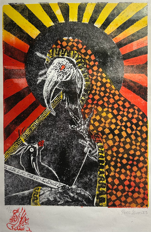 As Konstantinos Papamichalopoulos mentions in the text of the printed edition accompanying the exhibition: Printmaking, transcending the narrow concept of the mere reproduction of copies, is shown here as a more profound process that accentuates the importance of design, technical skill and metier, the cuisine of materials and techniques that is, of the artistic act. The exhibition also captures the effort to unite two ostensibly contrasting worlds: pop culture, which is a source of inspiration for young creators, and the academic knowledge that only a School of Fine Arts can provide..{…}The School of Fine Arts of the University of Ioannina, with the support of the Region of Epirus and the Municipality of Ioannina, looks forward to continuing this creative journey, bridging the past with the future of printmaking.