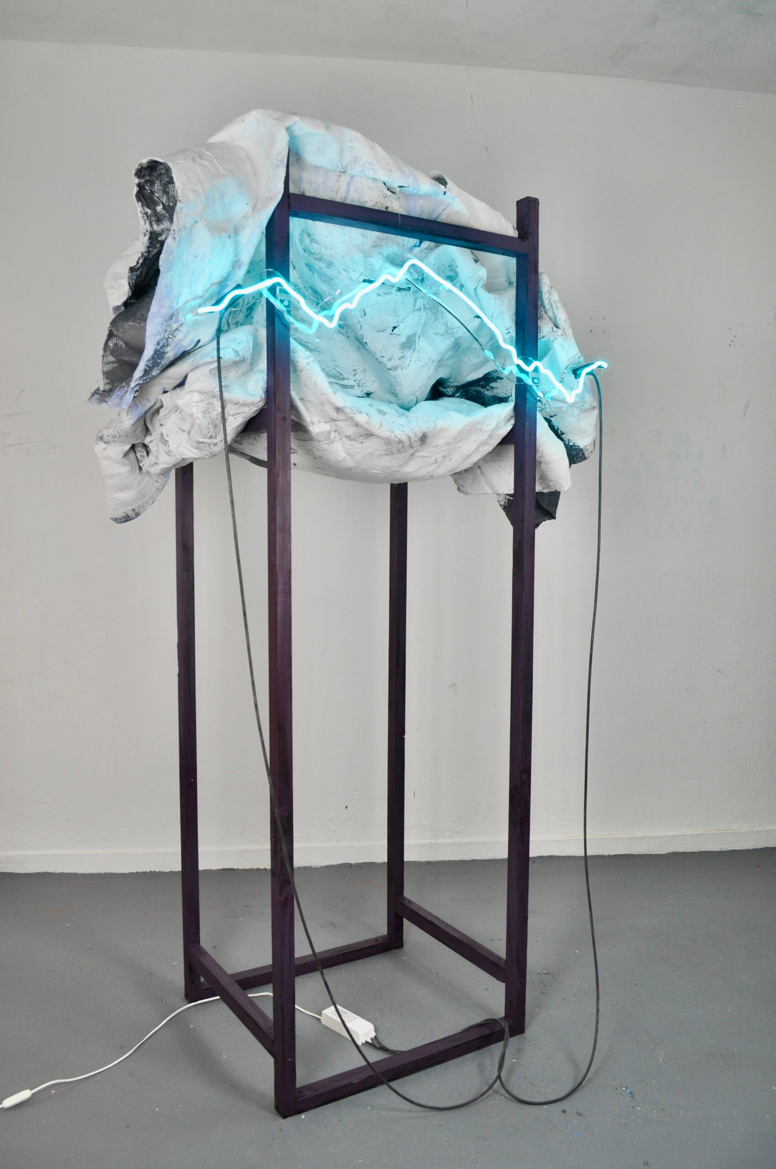 Η πήξη/στερεοποίηση, δηλαδή η αλλαγή της κατάστασης της ύλης, που χαρακτηρίζει αυτές τις γλυπτικές συναρμογές δημιουργεί ένα αντιθετικό αποτέλεσμα, μια παγωμένη ρευστότητα, σαν να προσπαθείς να κλείσεις έναν κεραυνό σε μπουκάλι, σαν να έχεις αιχμαλωτίσει ή καταψύξει ένα πυροτέχνημα.